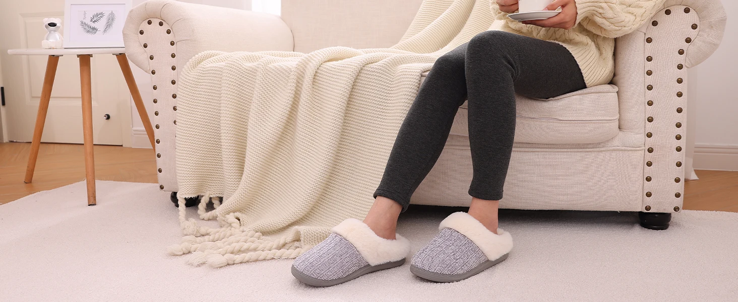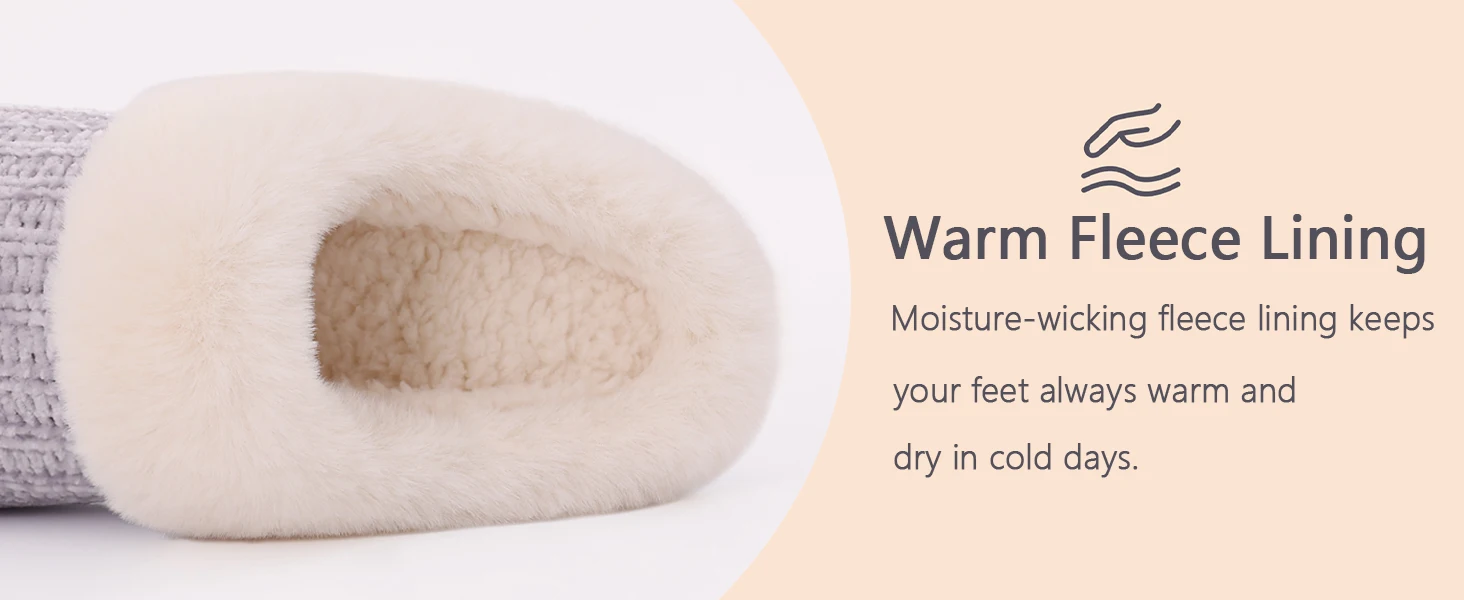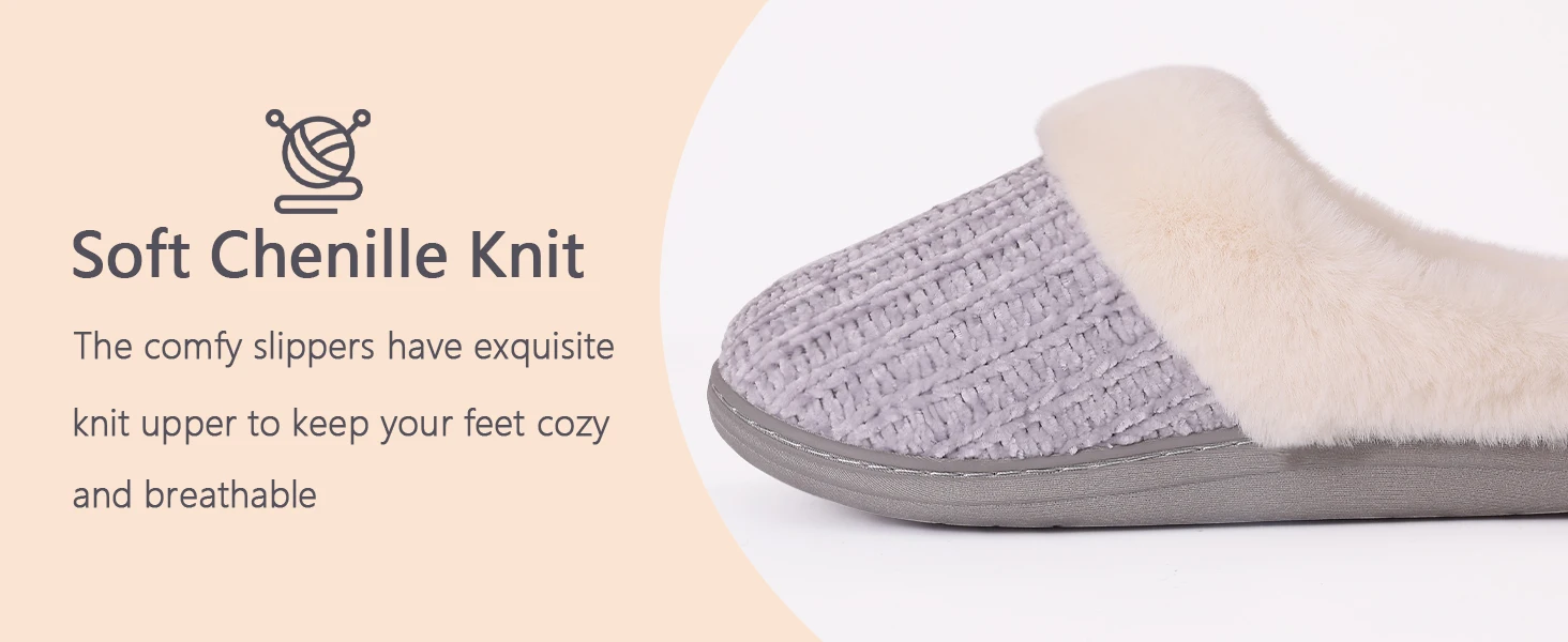 Warm Winter Knit Slippers: The chenille knit breathable upper and fuzzy wool-like plush shearling from lining to collar wraps your ankle providing all-around coverage of the whole foot that keeps your feet cozy in this winter.
